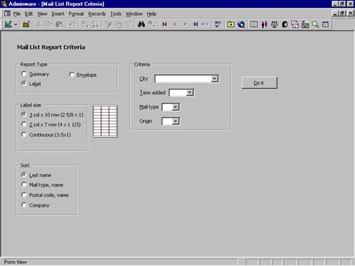 Report types and criteria option selections.