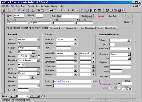 Church envelopes, Library, Attendance, Ministry, Pastor Records.