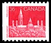 The Parliament design featured either the Rear of the Parliament buildings (34c, 36, 37, 38c); the West Block (2c, 6c henna brown); or the East Block (1c, 5c, 6c purple)